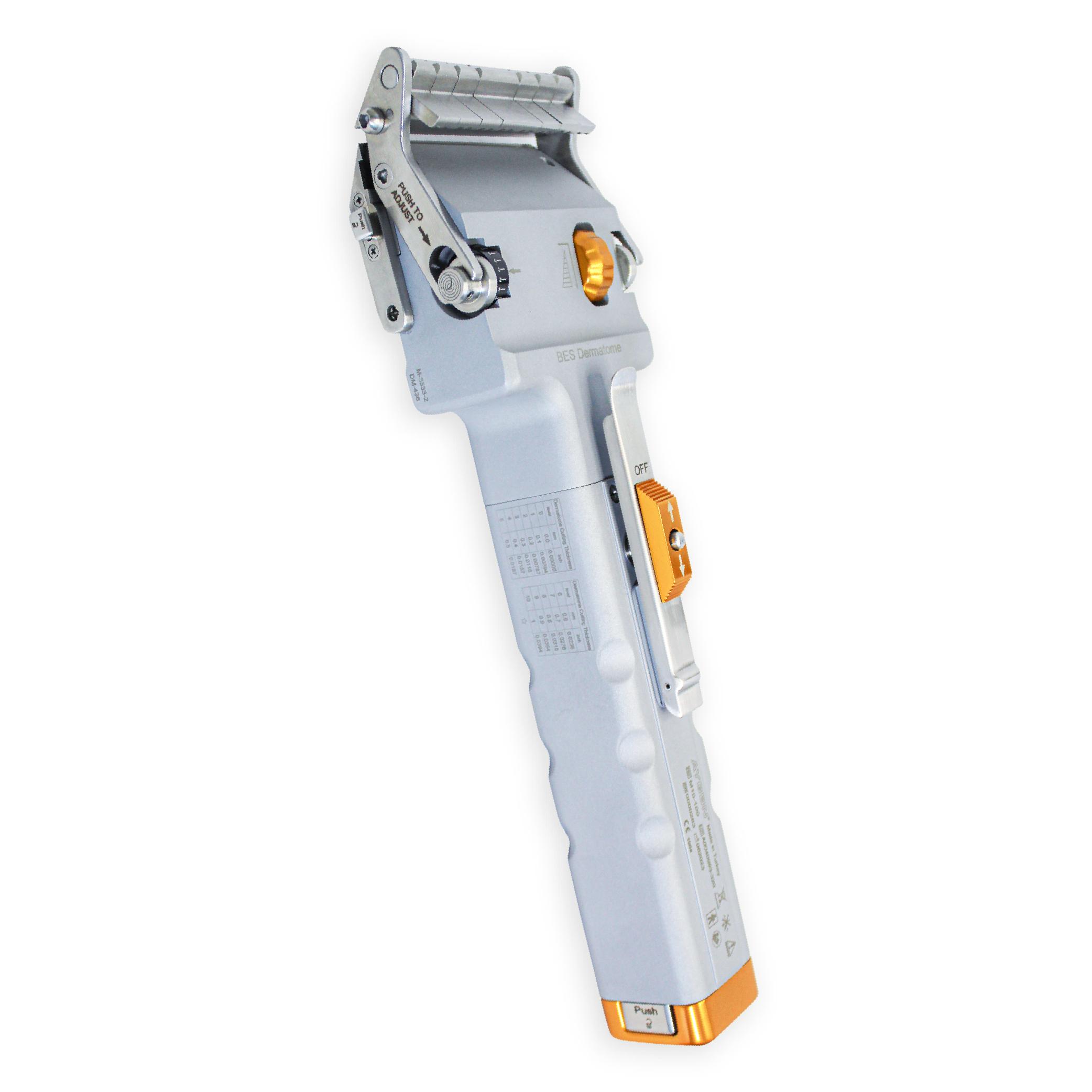 Este sistema incluye un dermatomo para trasplante de piel con hojas de acero inoxidable, diseñado para un manejo fácil, rendimiento óptimo y corte preciso. También se proporciona el skin injerto mesher para el tratamiento de la piel a inyectar, junto con sus respectivas láminas soportadoras.